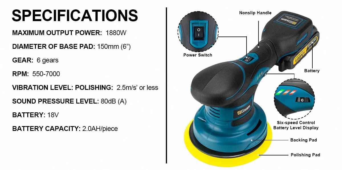 Polirka je lahka, prenosna in primerna za začetnike ter profesionalce. Z 5 mm ekscentričnim hodom poskrbi za enakomeren in varen rezultat na vseh lakiranih površinah.