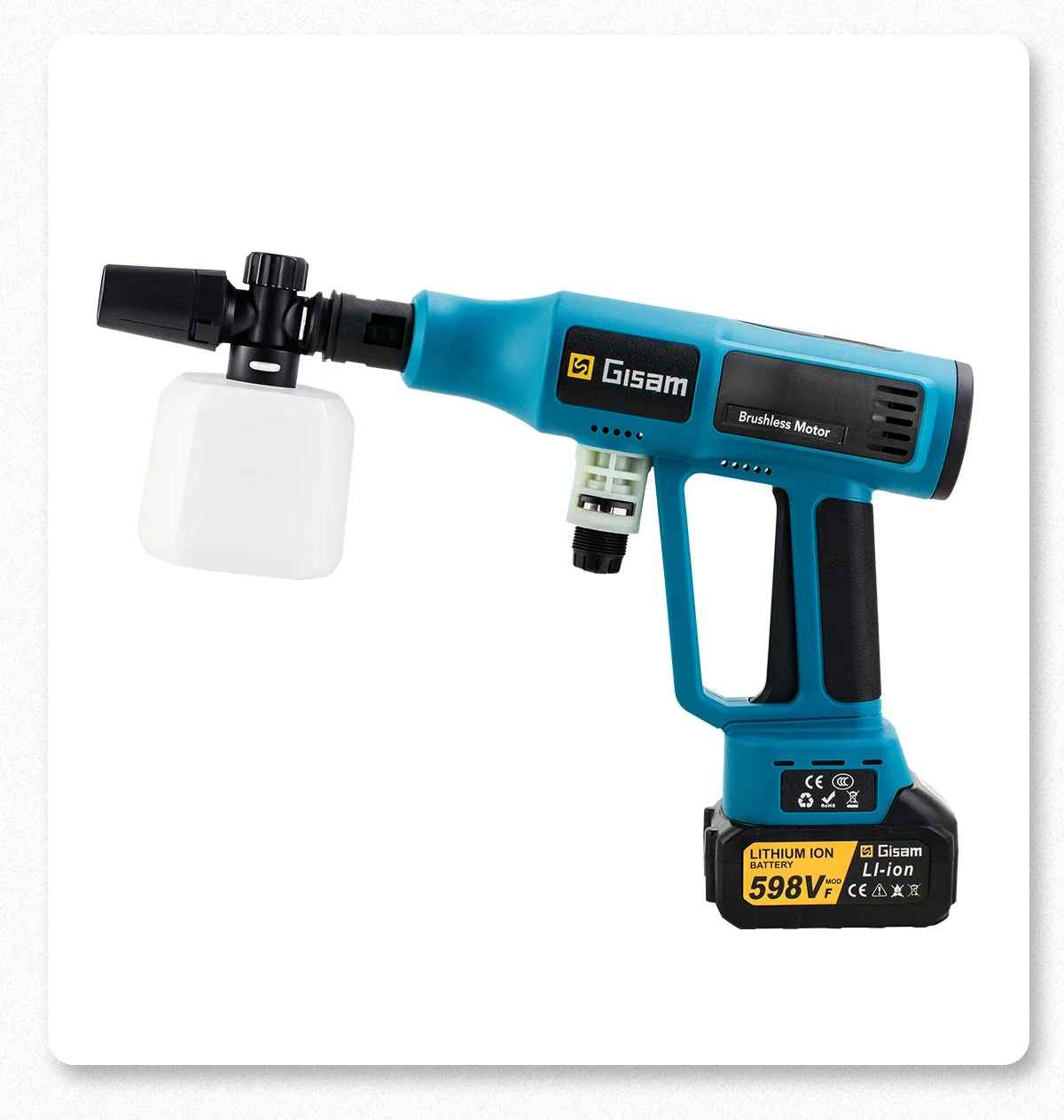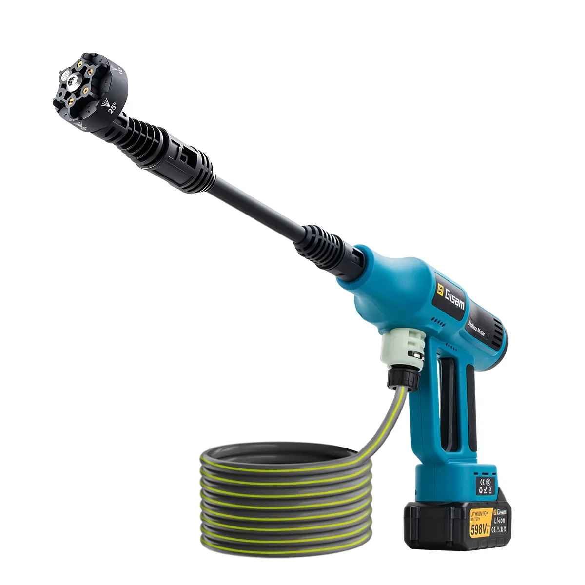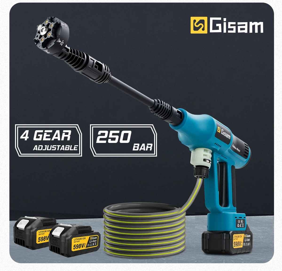 Brezžični visokotlačni čistilec – pri pranju avtomobila ni potrebe po priklopu na elektriko; uporaba je hitra in izjemno priročna.