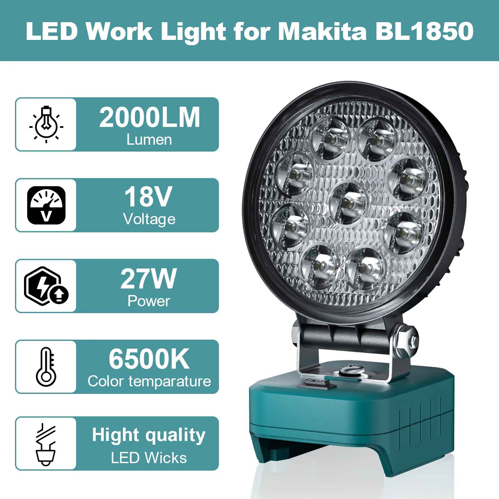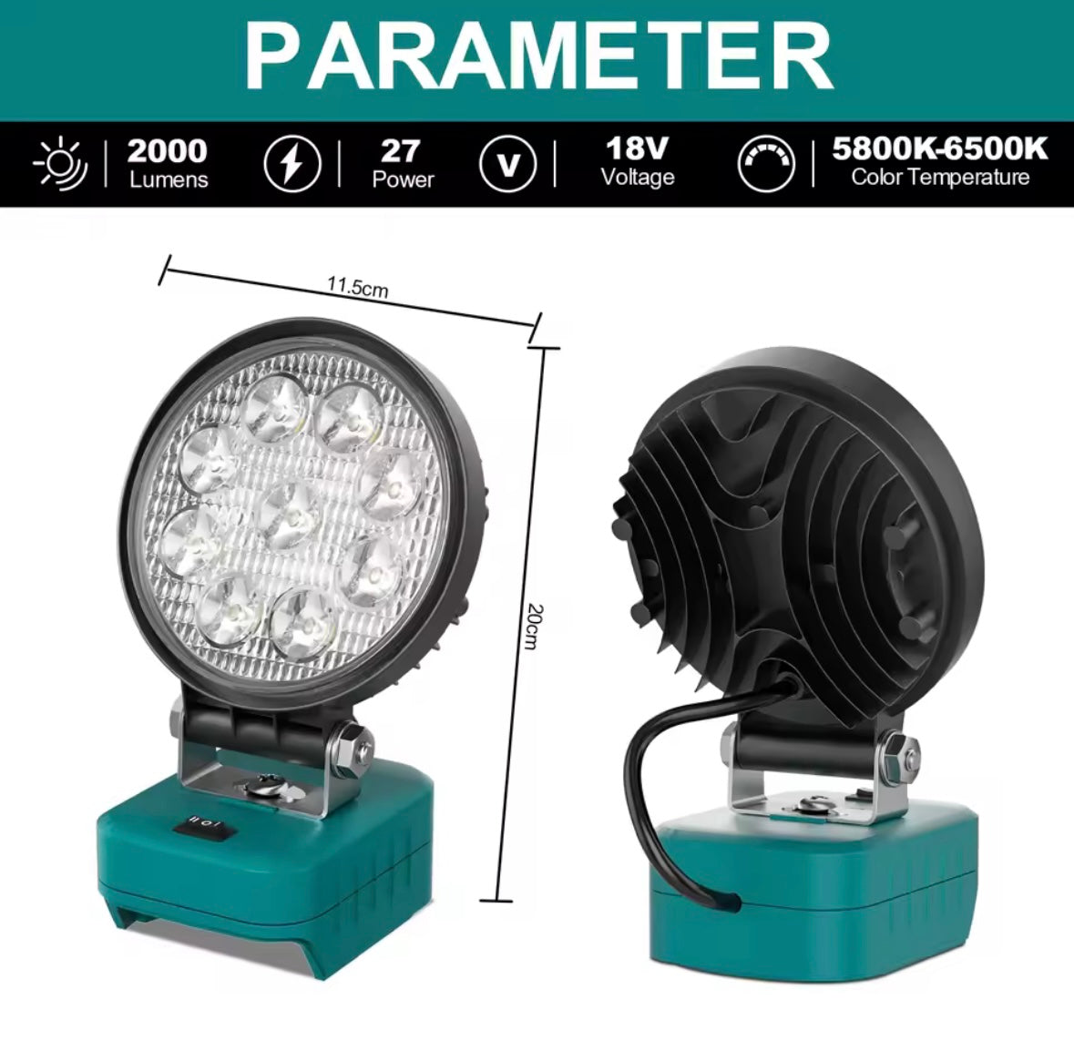 Močna ProLED 27W delovna luč, združljiva z 18V litij-ionskimi baterijami Makita in Gisam. Z do 2000 lumni svetilnosti in naravno belo svetlobo (5800K–6500K) omogoča odlično vidljivost tudi v slabših svetlobnih razmerah. Luč je brez baterije in polnilca, zato jo lahko preprosto uporabljate z obstoječo 18V baterijo. Idealna rešitev za domače mojstre in profesionalce, ki potrebujejo prenosno, zmogljivo in zanesljivo osvetlitev.