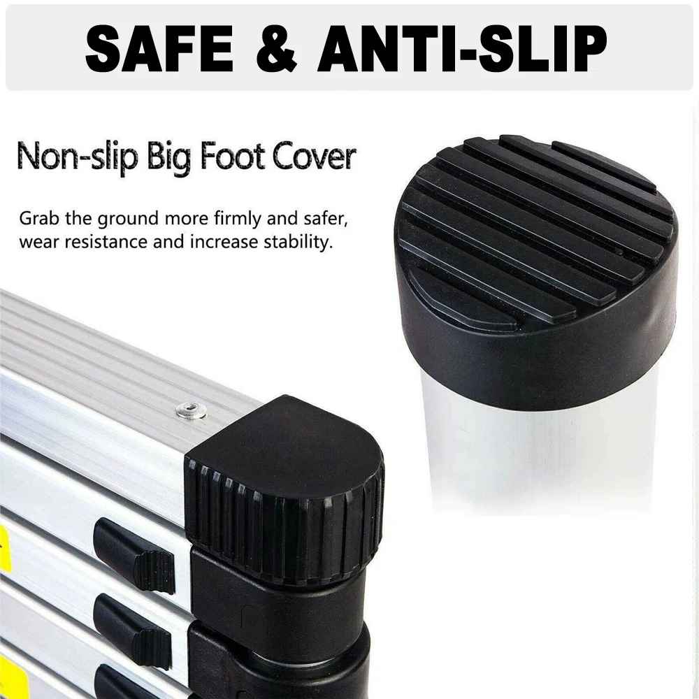 4,4 m teleskopska lestev iz nerjavečega jekla z 2 snemljivima kavljema